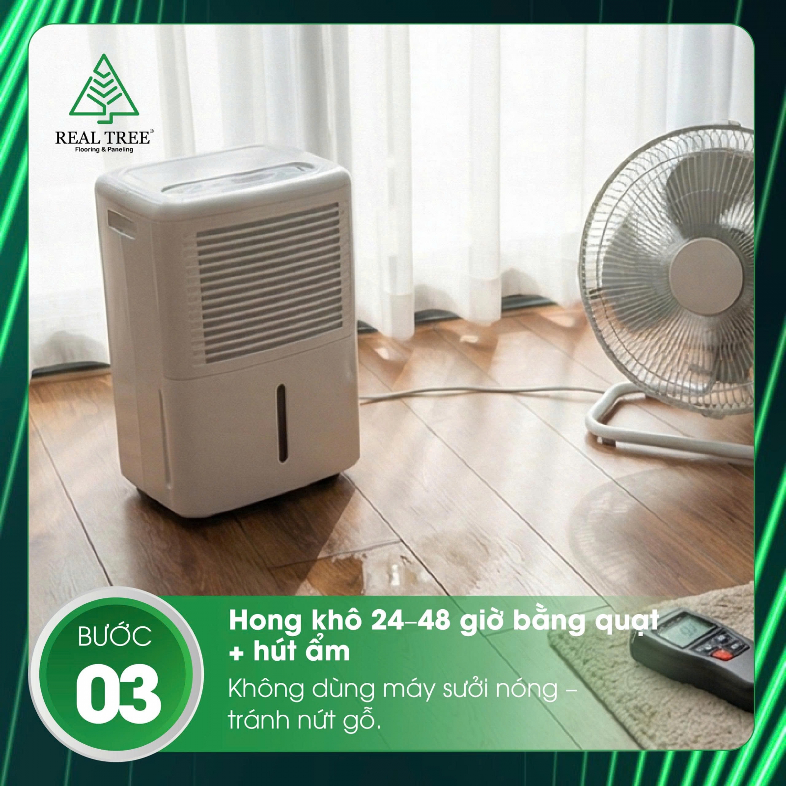 3. Hong khô 24–48 giờ bằng quạt và máy hút ẩm