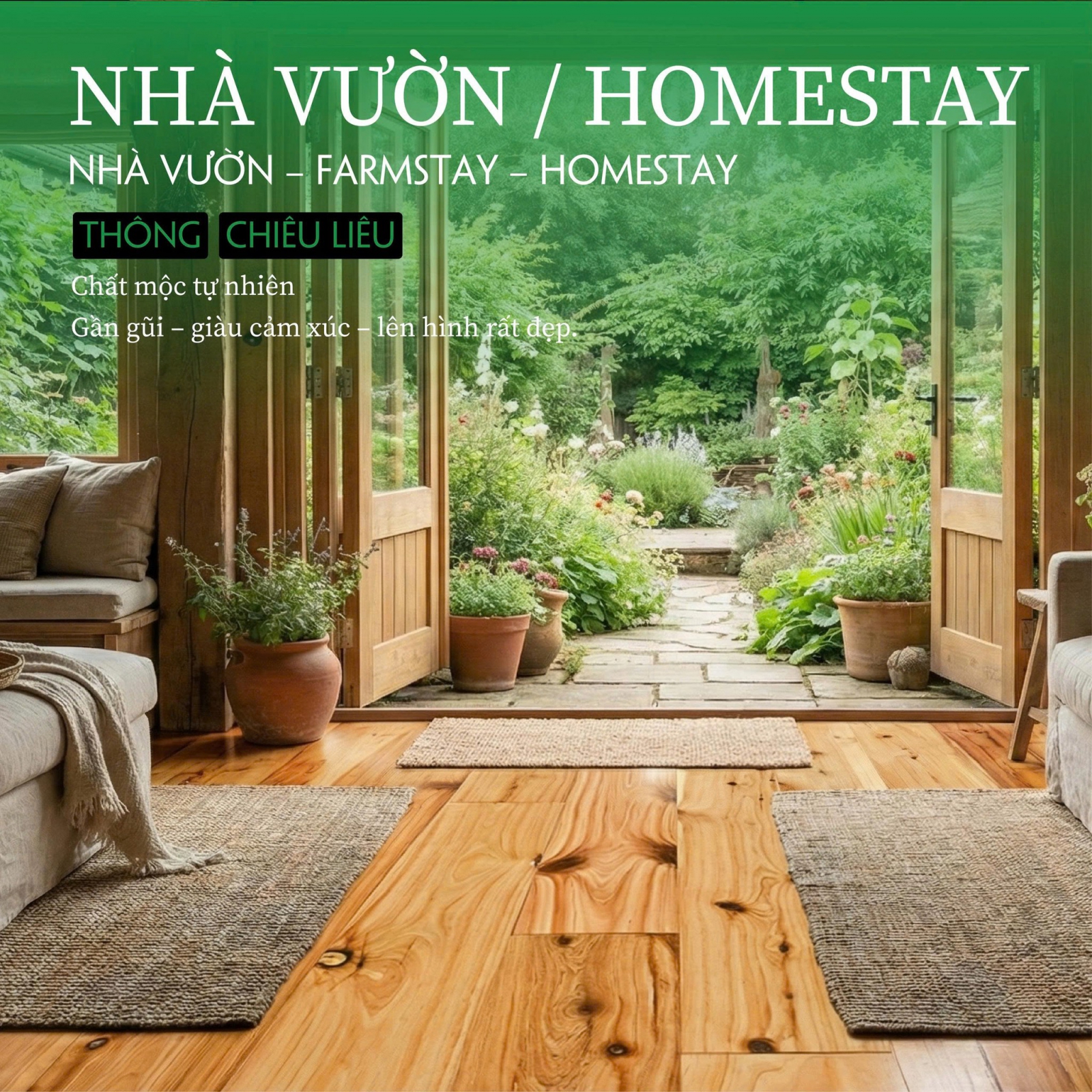 Những không gian nghỉ dưỡng, gần gũi thiên nhiên nên chọn sàn gỗ mang nét mộc mạc như Thông . Vân gỗ tự nhiên, màu sắc ấm áp giúp không gian trở nên thân thiện, thư giãn và rất đẹp khi lên hình.