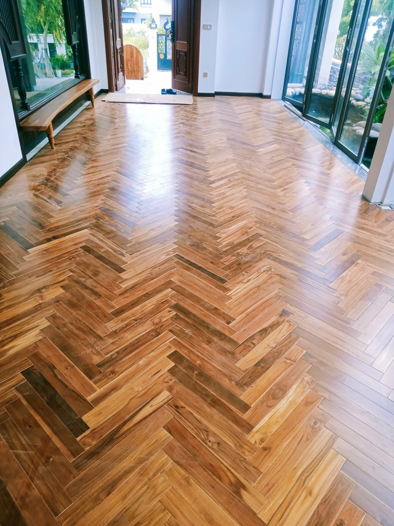 Hoa văn xương cá mang lại vẻ đẹp cao cấp cho không gian.