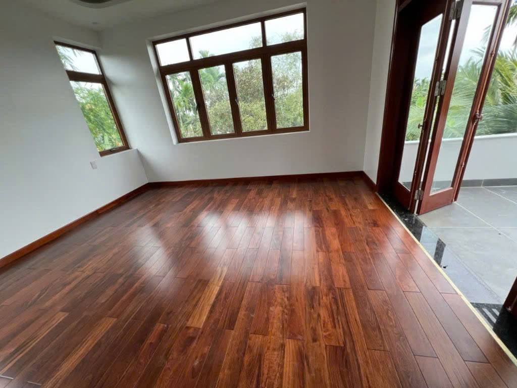 Sàn gỗ tự nhiên thường chịu ảnh hưởng từ thời tiết và độ ẩm. Tuy nhiên, gỗ Căm Xe có độ ổn định khá cao nên ít bị cong vênh hay co ngót khi điều kiện môi trường thay đổi. Khi được thi công đúng kỹ thuật, sàn có thể giữ được độ phẳng và chắc chắn trong suốt quá trình sử dụng.
