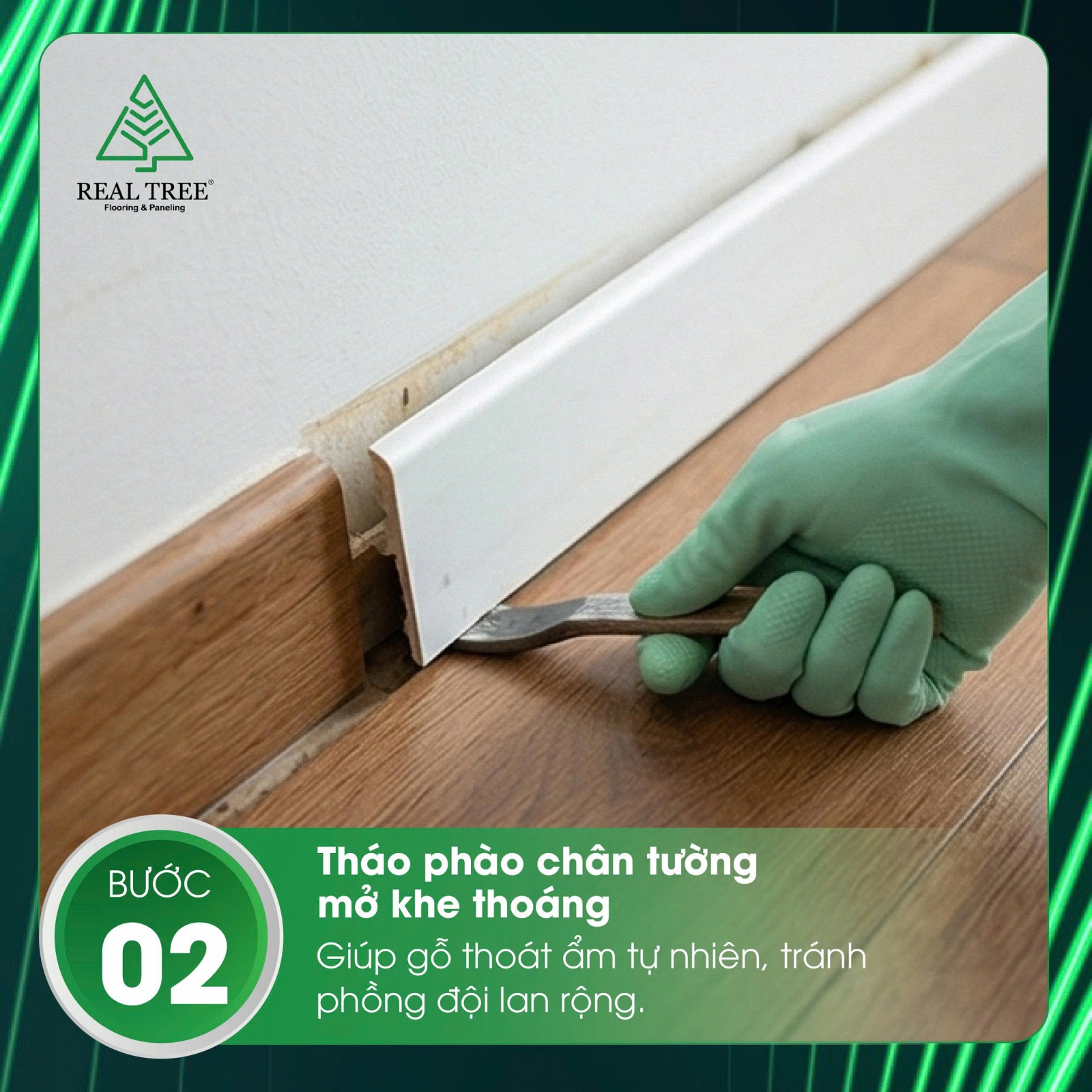 Nếu sàn vẫn phồng lớn hoặc xuất hiện mốc đen, cần can thiệp kỹ thuật.