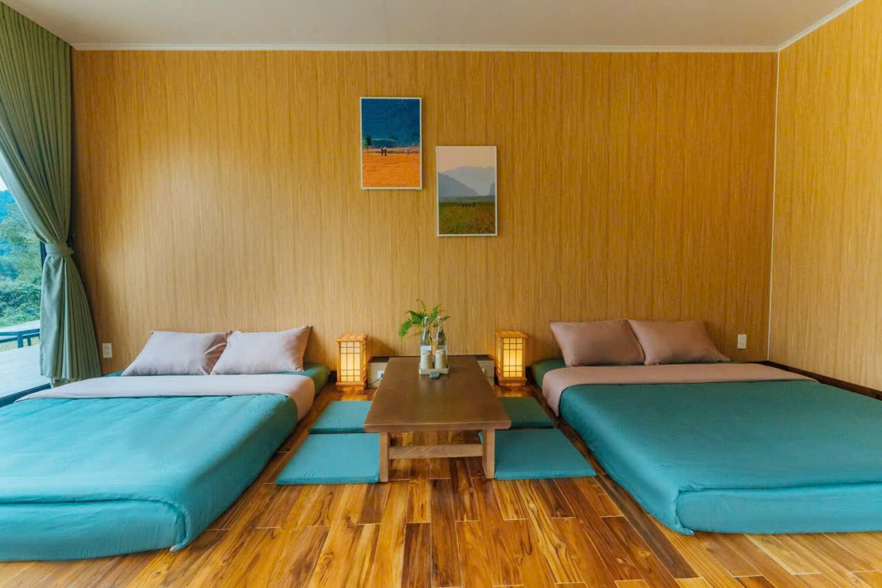 Blue Diamond Retreat sở hữu 20 phòng bungalow với sức chứa từ 20 đến 40 người. Khu bungalow được chia thành 5 nhà, nằm giữa rừng và bên suối, tạo nên không gian yên bình và gần gũi với thiên nhiên. Mỗi nhà bao gồm 4 phòng nghỉ và 1 phòng sinh hoạt chung, được trang bị bàn trà, lò sưởi và khu vực đọc sách, lý tưởng cho những buổi quây quần bên nhau.