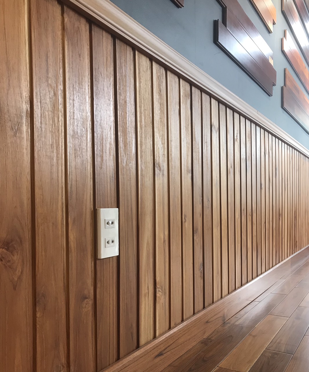 Gỗ Tếch Lào không chỉ mang lại vẻ đẹp tự nhiên mà còn giúp cách âm, cách nhiệt và bảo vệ tường cực tốt.
